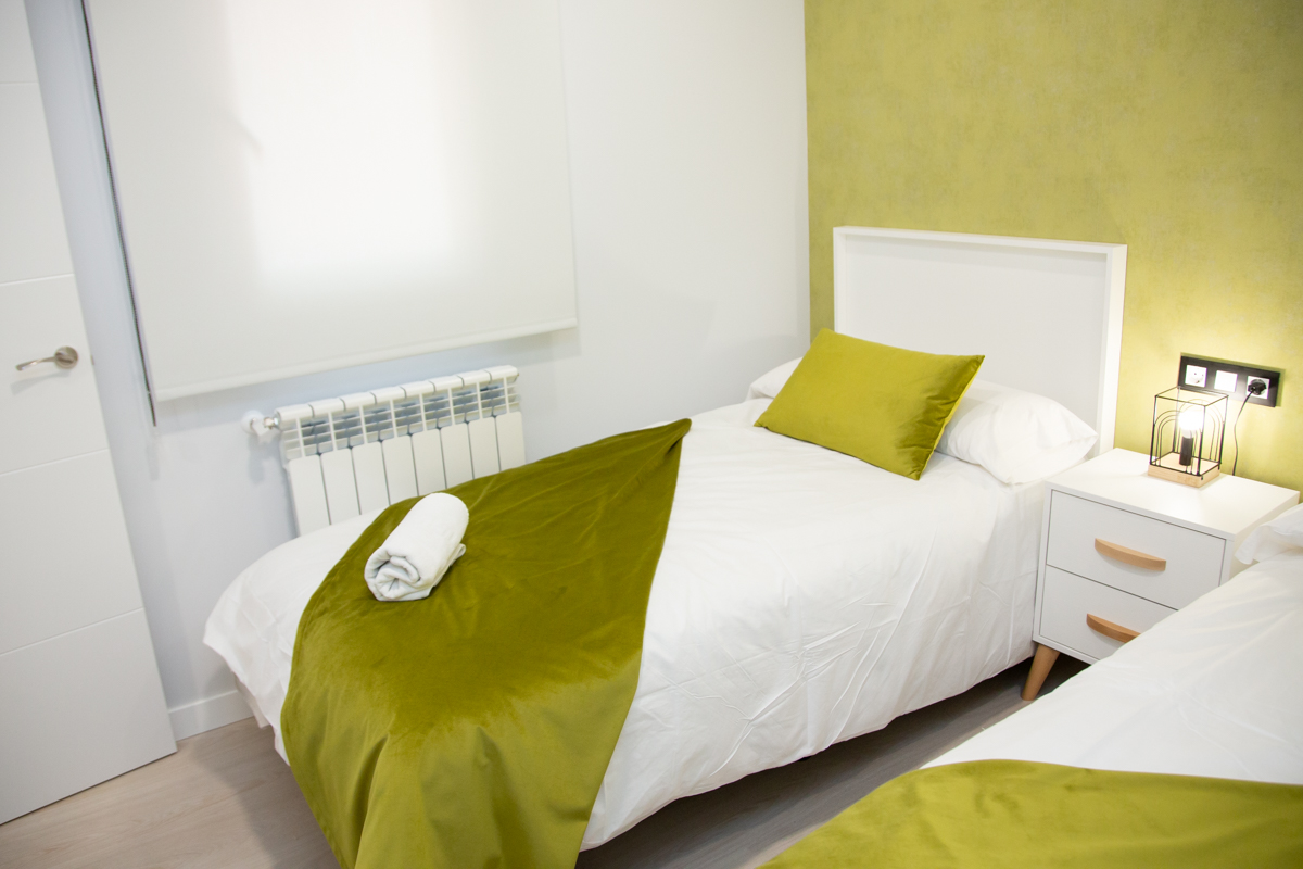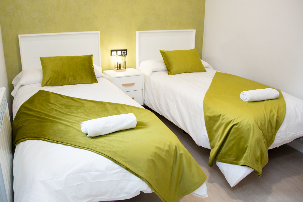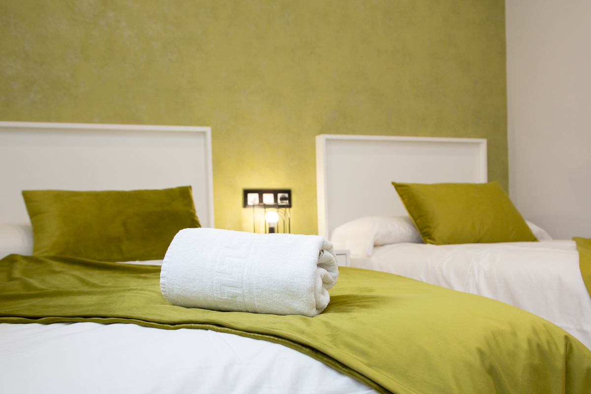 La suite Verde se caracteriza por su decoración inspirada en la naturaleza, creando un oasis de paz y serenidad en pleno centro de Soria. Completamente equipada y reformada, esta suite combina comodidad moderna con detalles rústicos que realzan su encanto. Los tonos verdes y los materiales naturales utilizados en su diseño promueven una sensación de calma y bienestar, proporcionando el entorno perfecto para descansar tras un día de exploración. La suite Verde es el refugio ideal para quienes buscan una estancia rejuvenecedora y en armonía con el entorno.