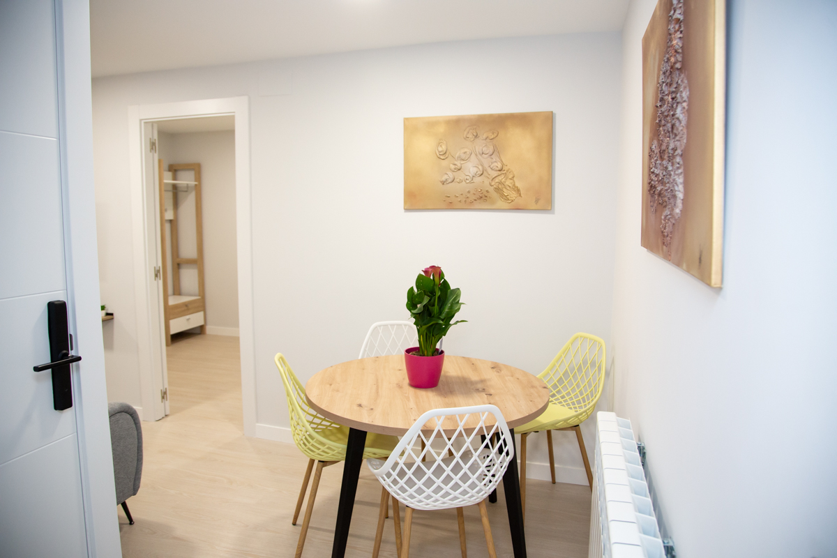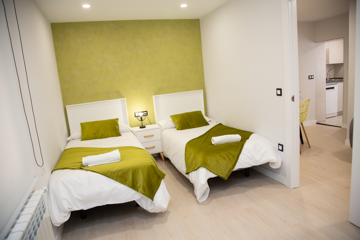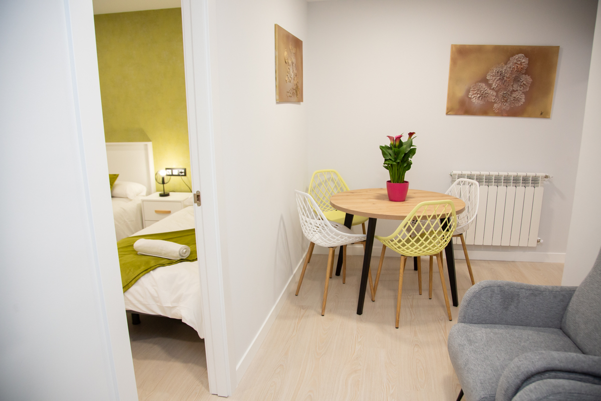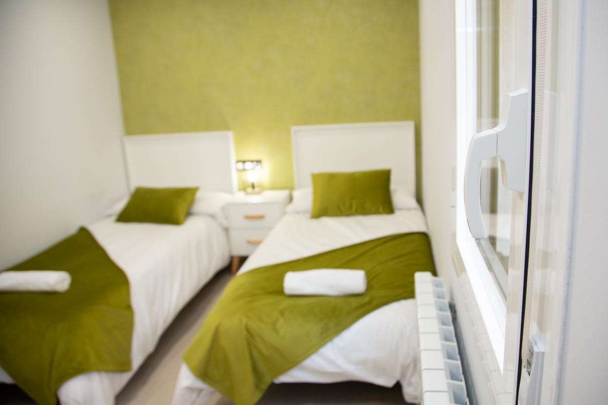 La suite Verde se caracteriza por su decoración inspirada en la naturaleza, creando un oasis de paz y serenidad en pleno centro de Soria. Completamente equipada y reformada, esta suite combina comodidad moderna con detalles rústicos que realzan su encanto. Los tonos verdes y los materiales naturales utilizados en su diseño promueven una sensación de calma y bienestar, proporcionando el entorno perfecto para descansar tras un día de exploración. La suite Verde es el refugio ideal para quienes buscan una estancia rejuvenecedora y en armonía con el entorno.
